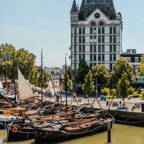 Rotterdam es una ciudad con una historia única marcada por la reconstrucción y la modernidad. Se fundó en el siglo XIII, originándose como un pequeño puerto de pesca en el río Mosa. A lo largo de los siglos, fue creciendo como un centro comercial y marítimo, especialmente durante el auge del comercio en los Países Bajos en los siglos XVI y XVII. Sin embargo, la historia de Rotterdam sufrió un giro drástico en la Segunda Guerra Mundial. Durante el ataque aéreo alemán de mayo de 1940, gran parte de la ciudad fue destruida, incluyendo su centro histórico. Este devastador bombardeo obligó a Rotterdam a ser reconstruida casi desde cero. En lugar de restaurar el antiguo estilo arquitectónico, la ciudad adoptó un enfoque moderno y vanguardista en su reconstrucción, lo que la convirtió en un referente de la arquitectura contemporánea. A lo largo del siglo XX, Rotterdam se consolidó como uno de los puertos más grandes y activos del mundo, lo que impulsó su desarrollo económico. La ciudad es ahora conocida por su arquitectura innovadora, su dinamismo cultural y su carácter cosmopolita.